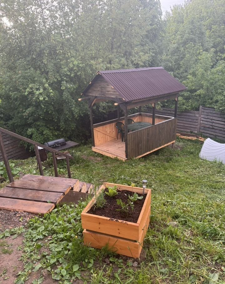 На учаcтке находятся постройки; беседка, хоз помещение, вольер, уличный туалет.