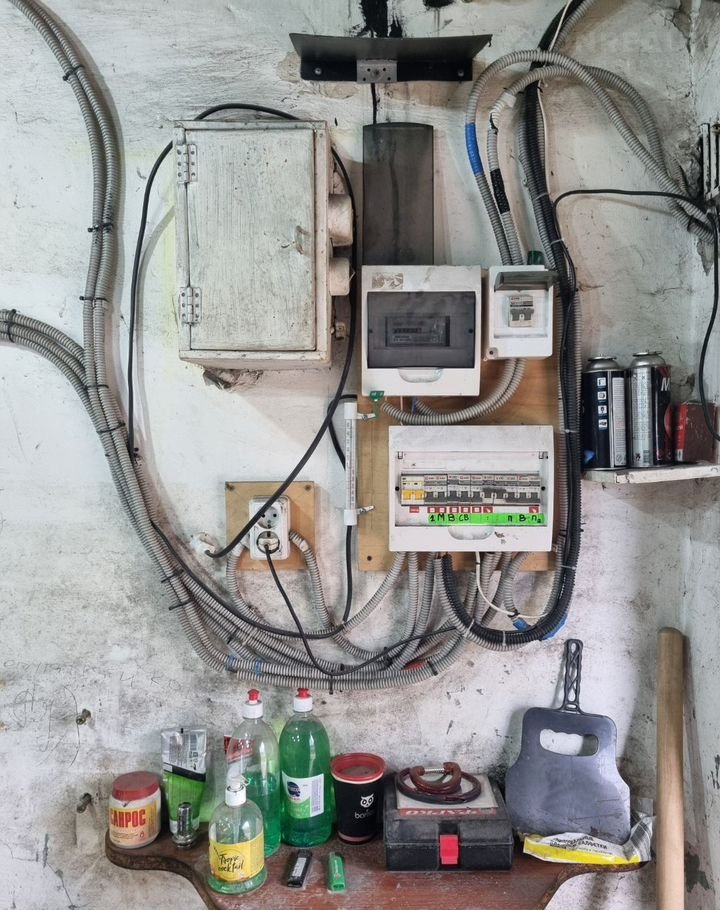 Ямы нет, пол бетонный. Стены отштукатурены. Есть электричество, всё работает - свет, розетки, вытяжка, счёстчик. Также есть необходимые полки, верстак.