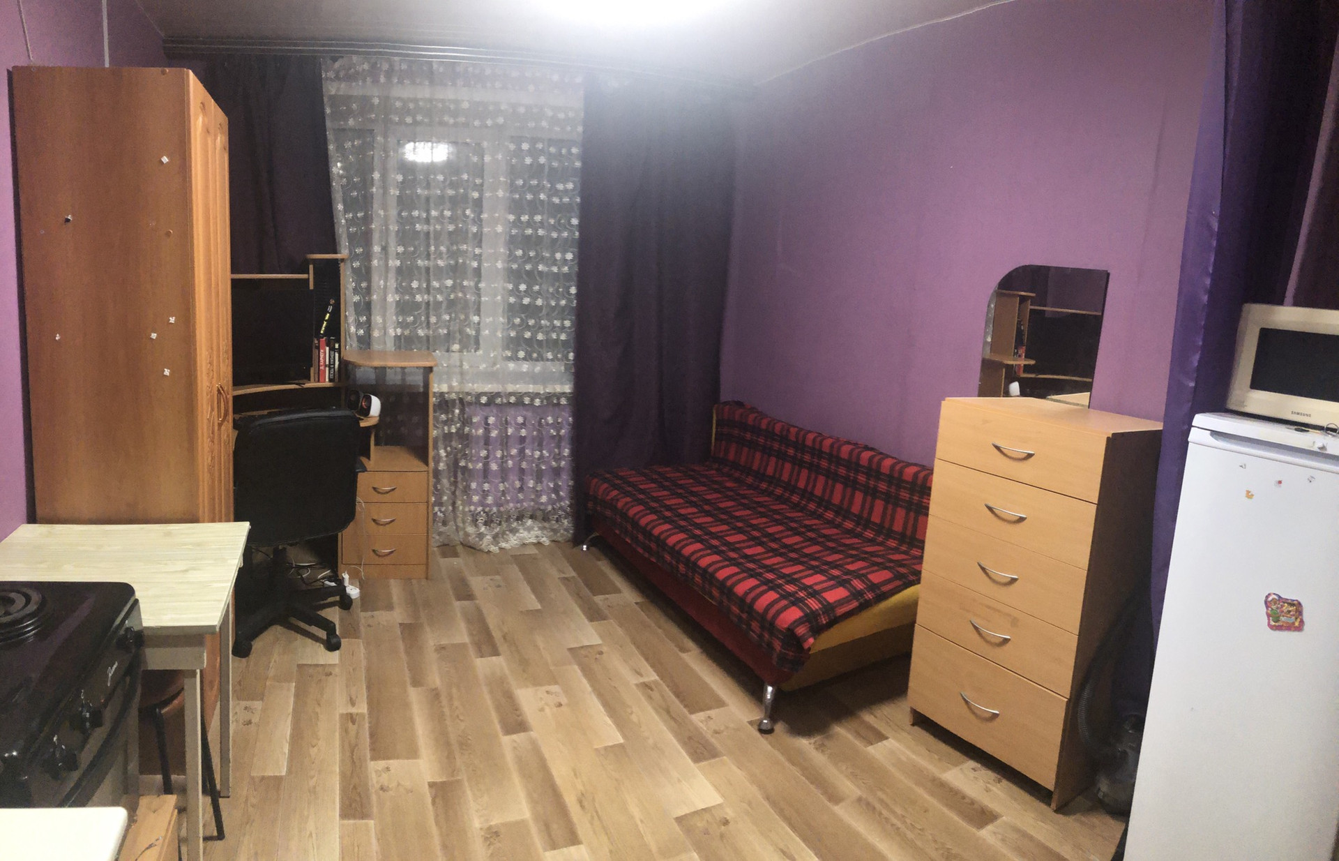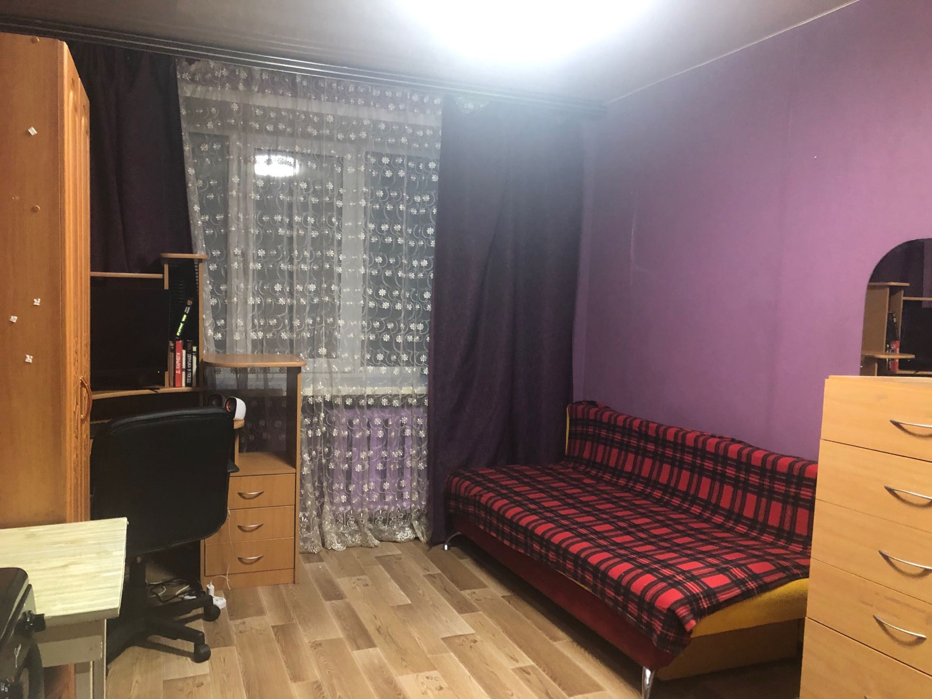 В продаже комната 13,2 кв.м солнечная сторона, натяжные потолки, в комнате остаётся компьютерный стол, все остальное по согласованию, тихие и спокойные соседи, причина продажи расширение площади. Квартира без долгов и обременений, один взрослый собственник, коммунальные платежи около 1300₽. Готовы выходить на сделку, ключи в день подписания договора. Ждём на просмотр, торг возможен после просмотра.