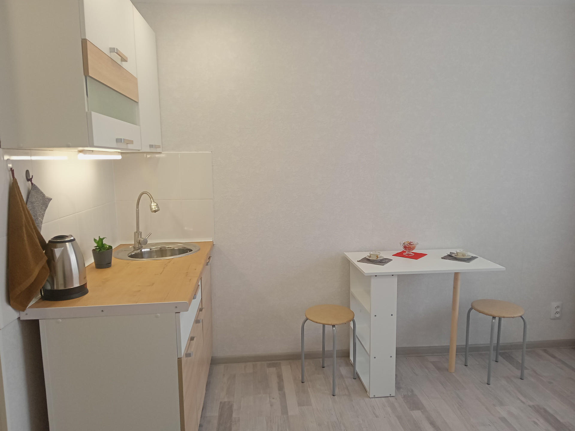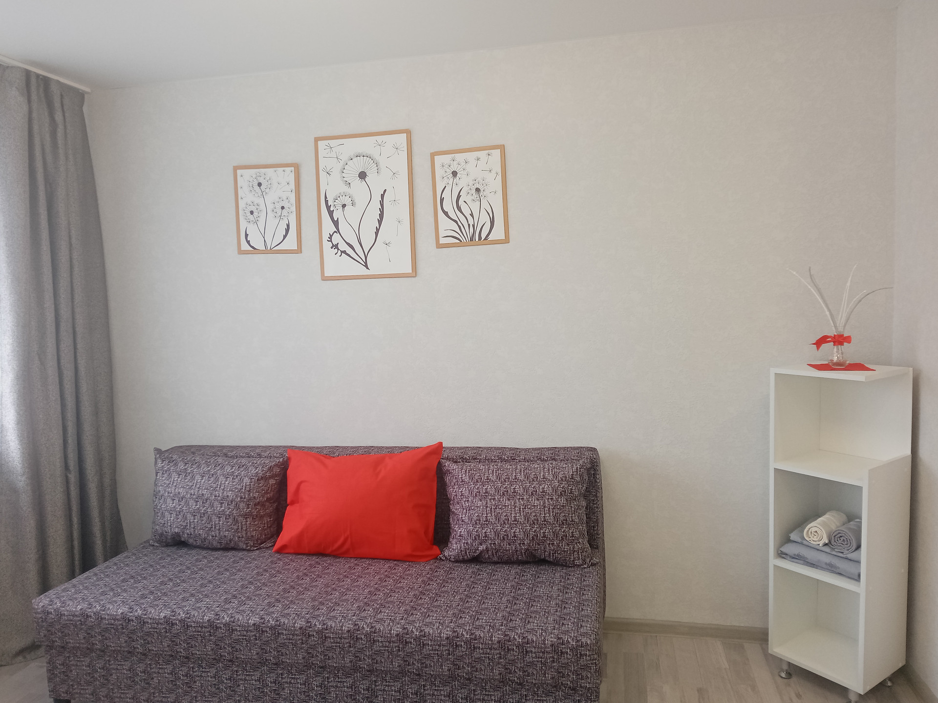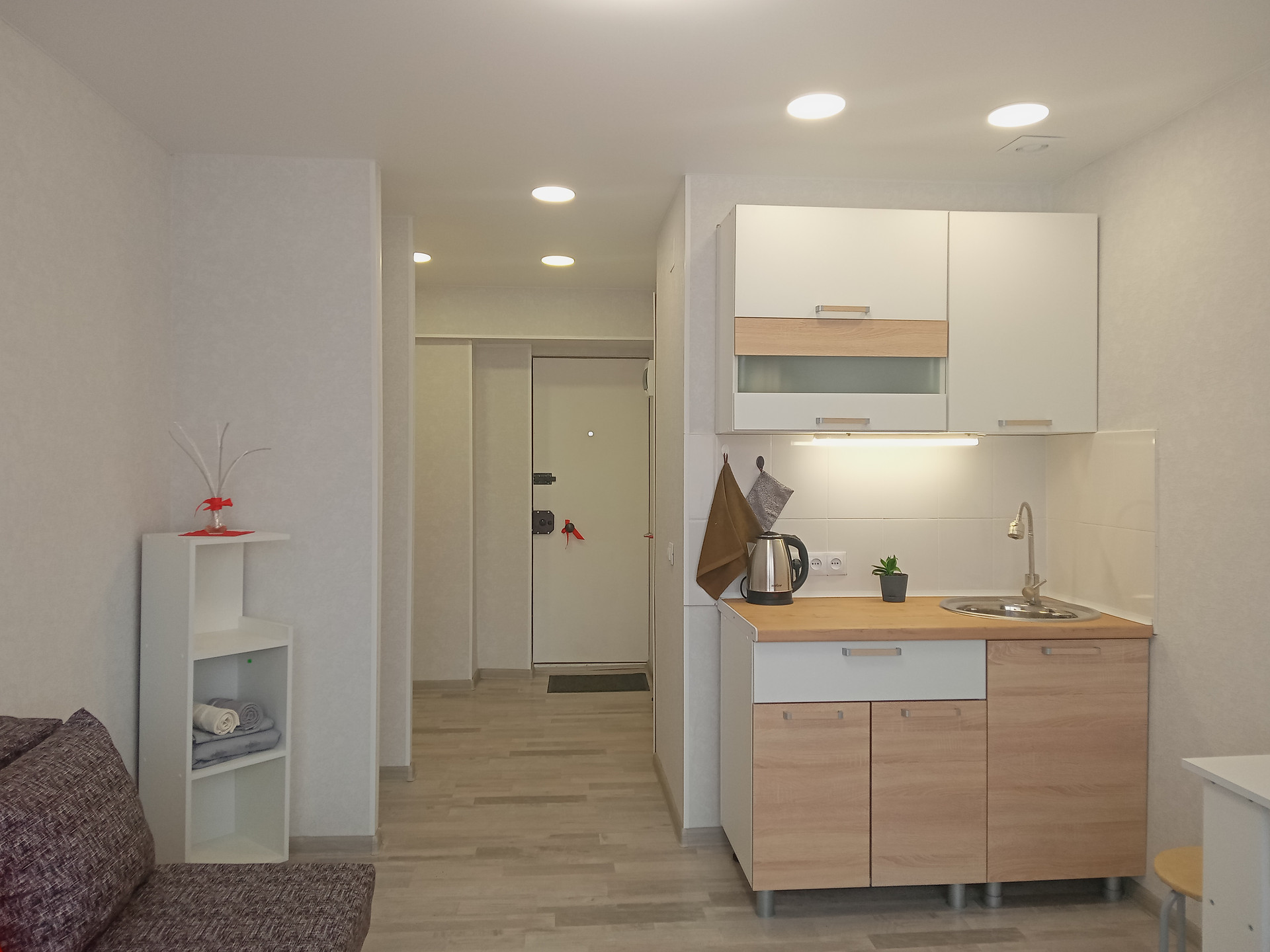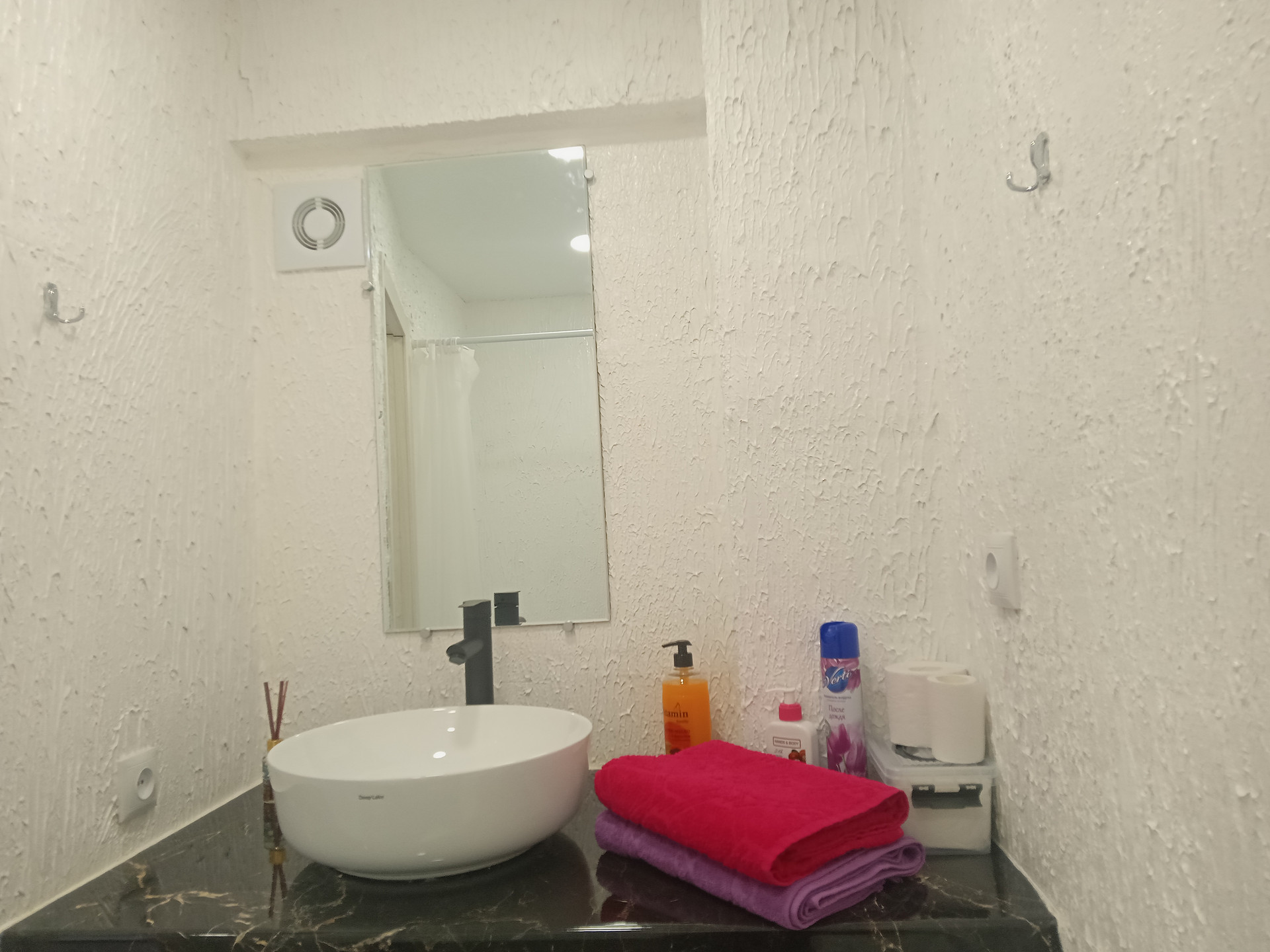 Новая проводка, система вентиляции, собственный санузел с декоративной штукатуркой и тёплым полом, качественный ламинат и обои.