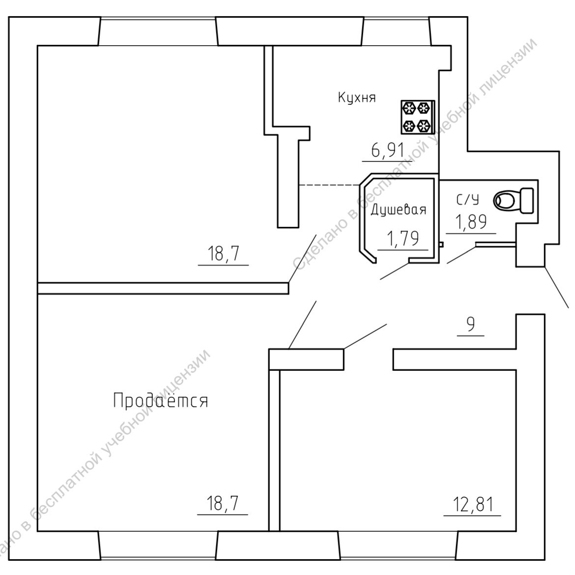 Площадь кухни 6.91 м2