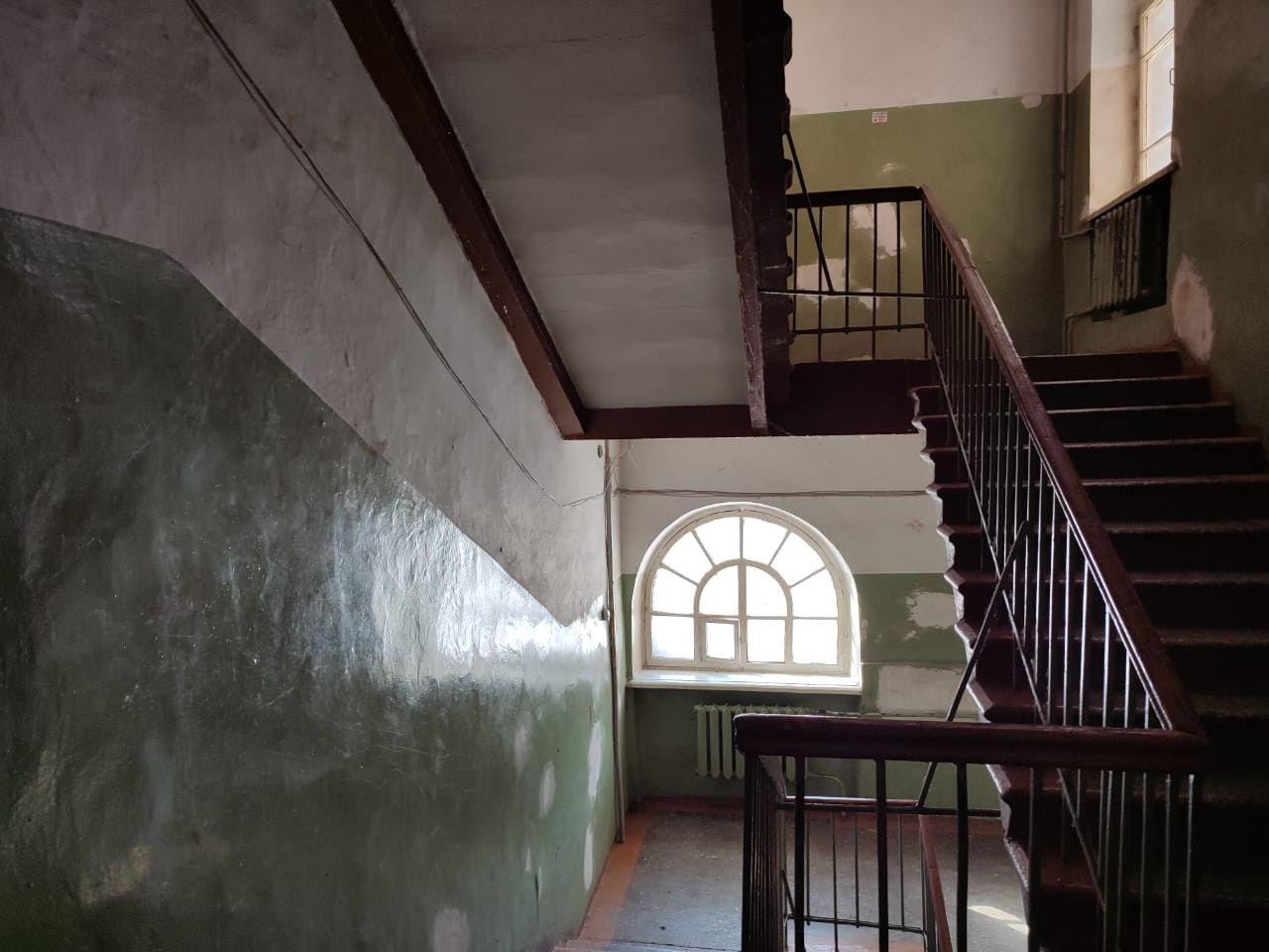 Большая площадь, потолок выше 3 метров, высокое большое окно, широкие коридоры.