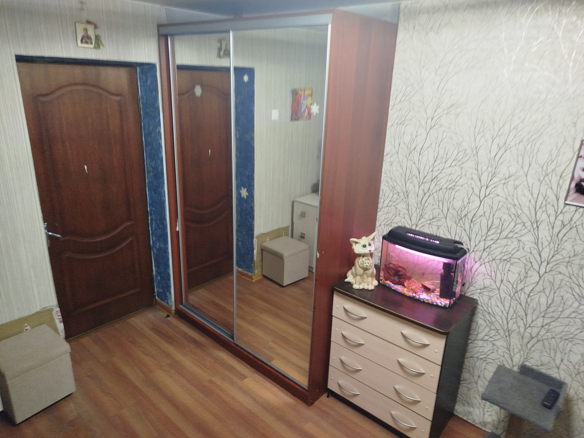 Уютная, приятная комната, 1105 кв.м., 3 этаж, Спокойные соседи. Двойная дверь, остается шкаф купе. Добро пожаловать на просмотры