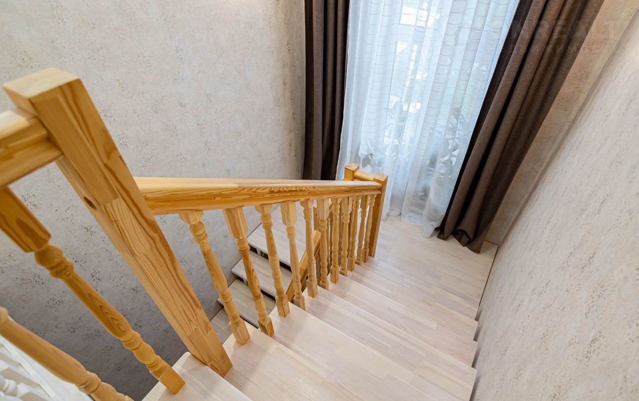 Второй этаж занимает мастер-спальня хозяев с панорамными окнами, приватным санузлом и гардеробной, три уютные спальни и общий санузел