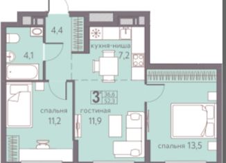 Продажа трехкомнатной квартиры, 52.3 м2, Сапфирная улица, 13