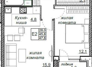 2-комнатная квартира на продажу, 47.8 м2, улица Луначарского, 97