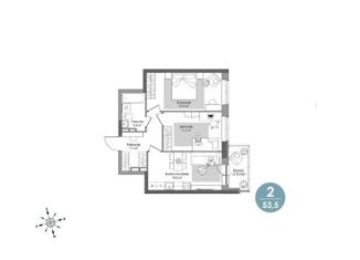 Продажа двухкомнатной квартиры, 53.7 м2