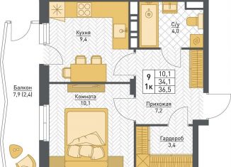 Продажа однокомнатной квартиры, 36.3 м2, Целинная улица, 59