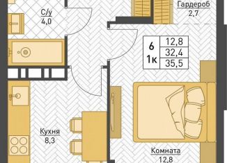 Общая площадь: 35.5 м2