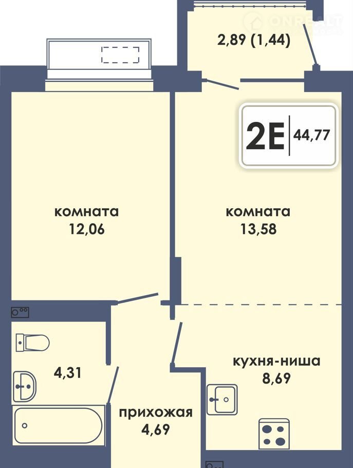Общая площадь 44.8 м2