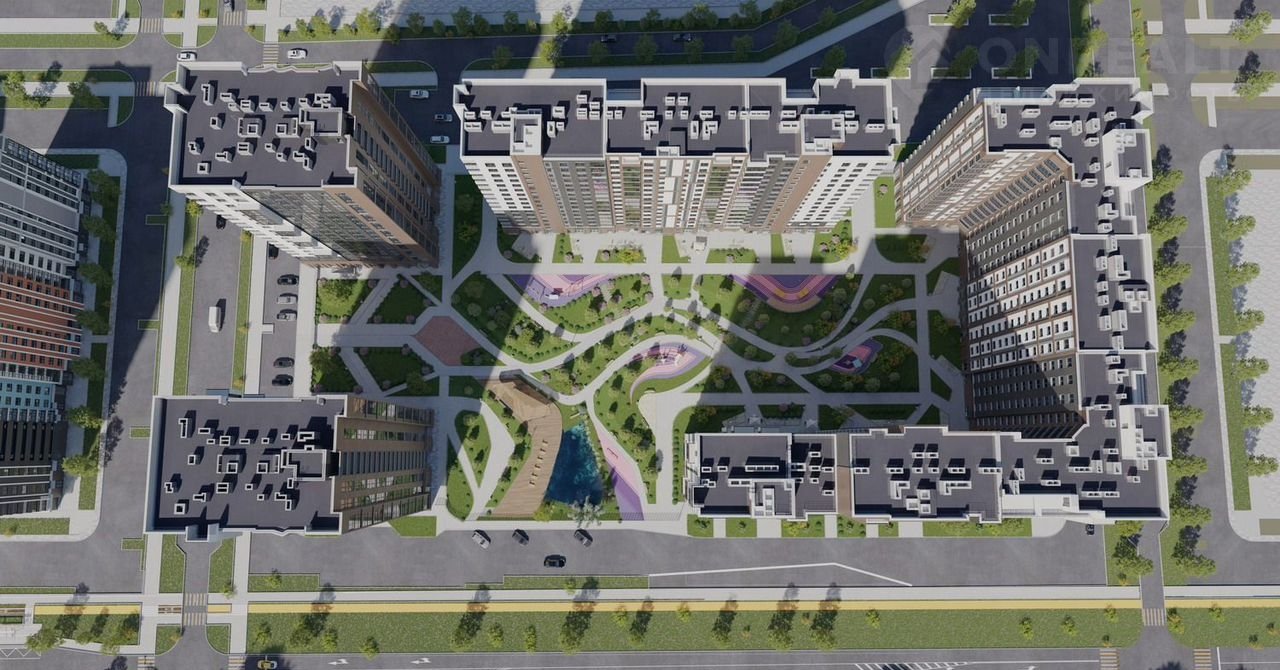 Всё в шаговой доступности: торговый центр, кафе, пункты доставки, тропа для прогулок с питомцами, зарядные станции для электрокаров.