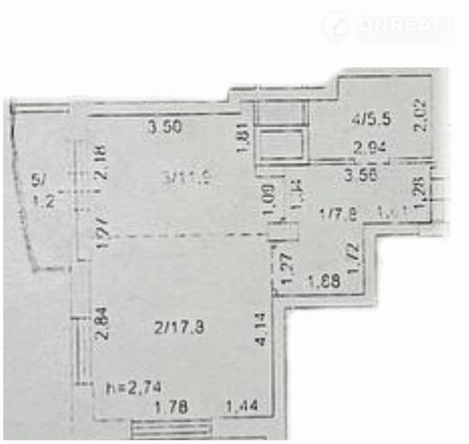 Общая площадь 44.2 м2