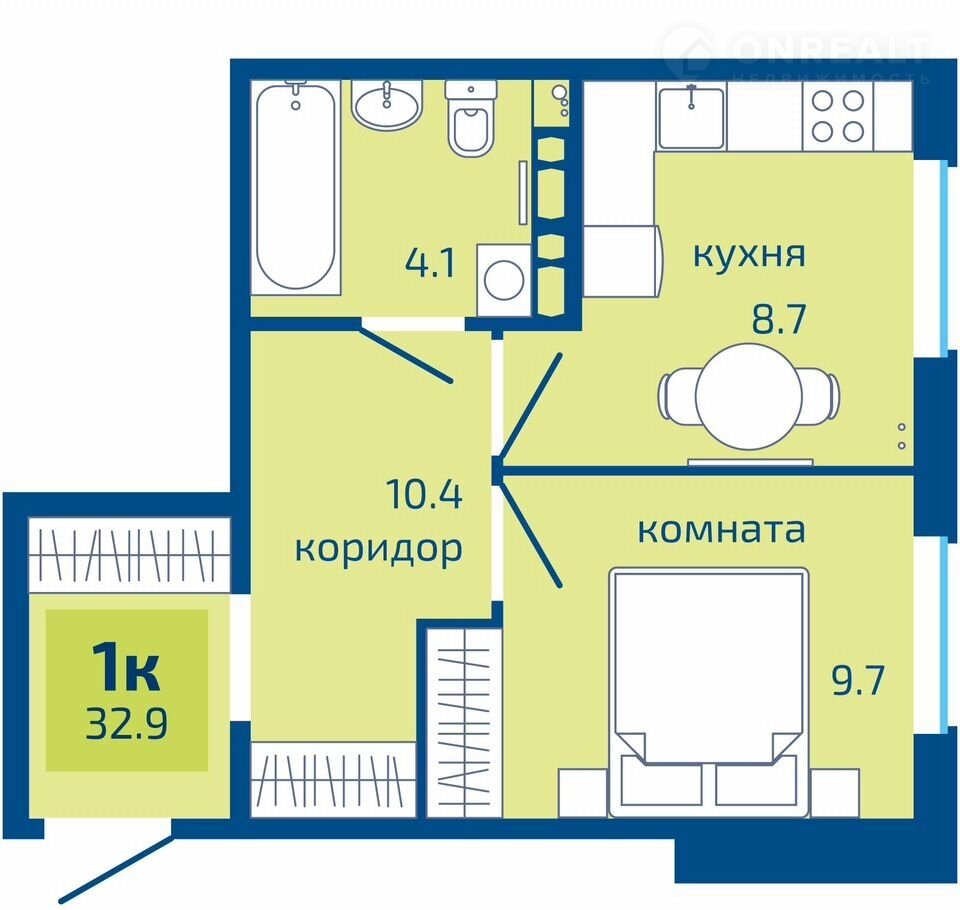 Общая площадь 32.9 м2
