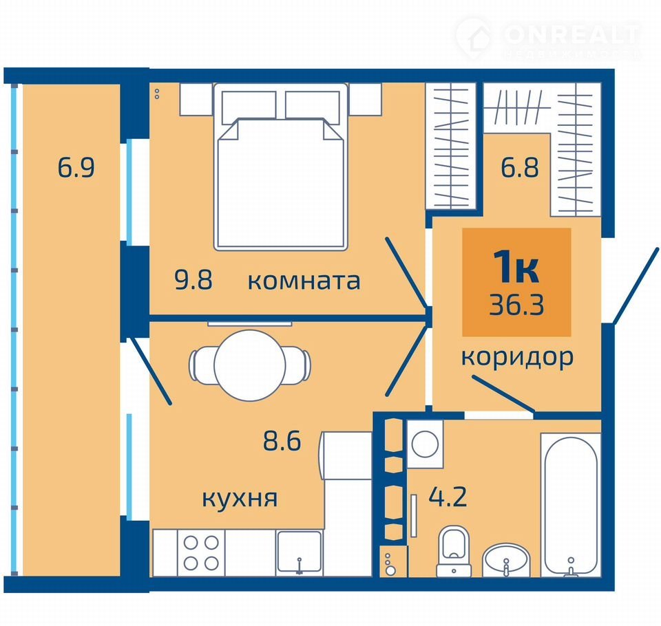 Общая площадь 36.3 м2