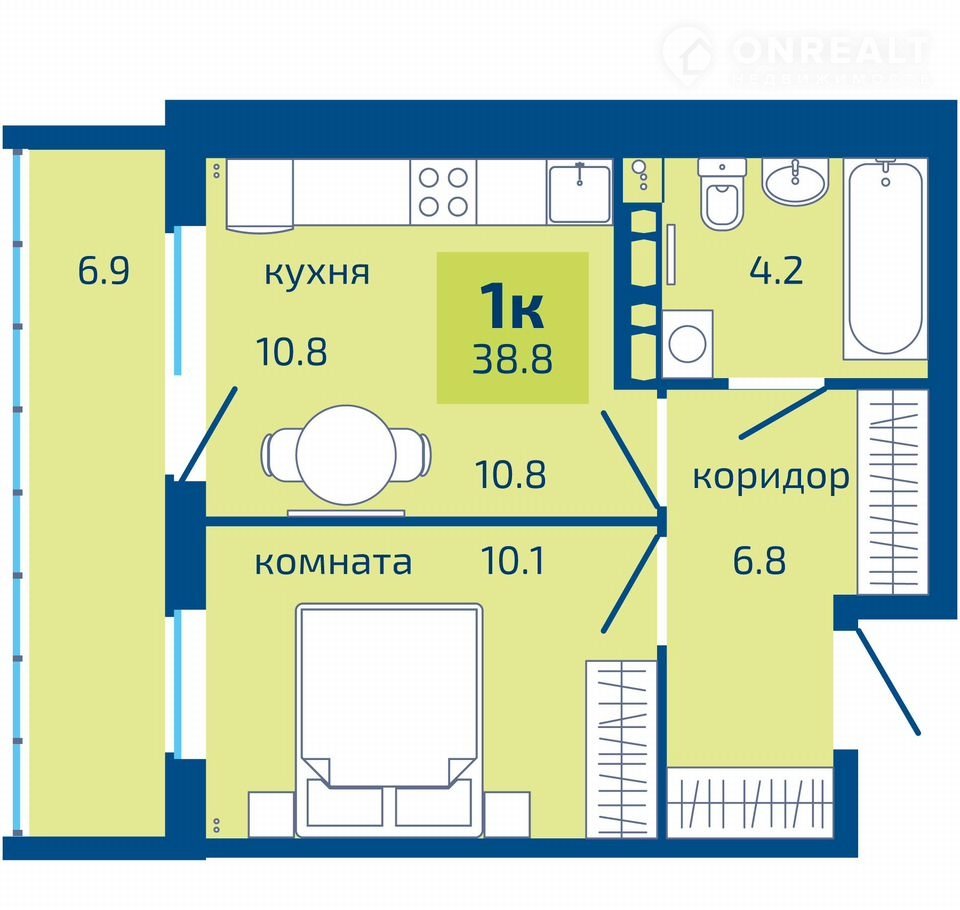 Общая площадь 38.8 м2