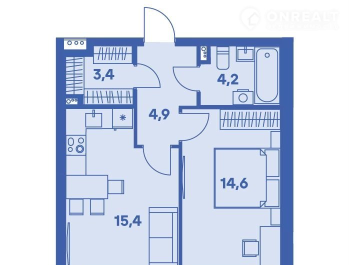 Жилая площадь 24.6 м2