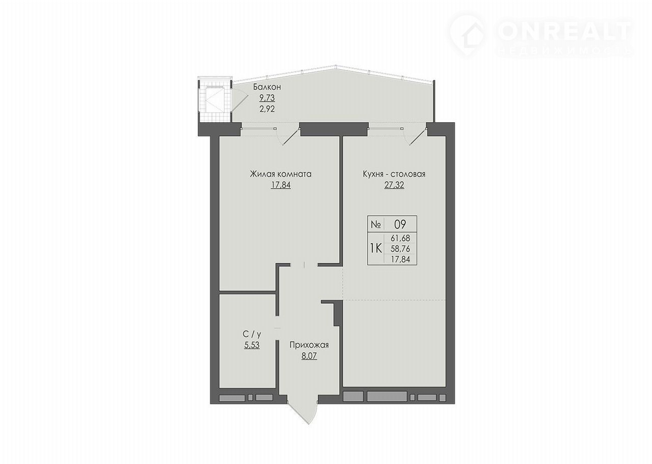 Общая площадь 61.7 м2
