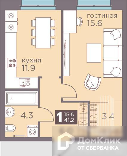 Общая площадь 41 м2