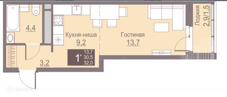 Общая площадь 32 м2