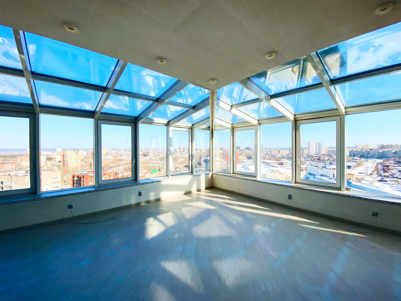 Шикарное панорамное остекление с использованием профилей из высокопрочного немецкого алюминия предоставит вам возможность безопасно наслаждаться видом на город с высоты птичьего полёта…