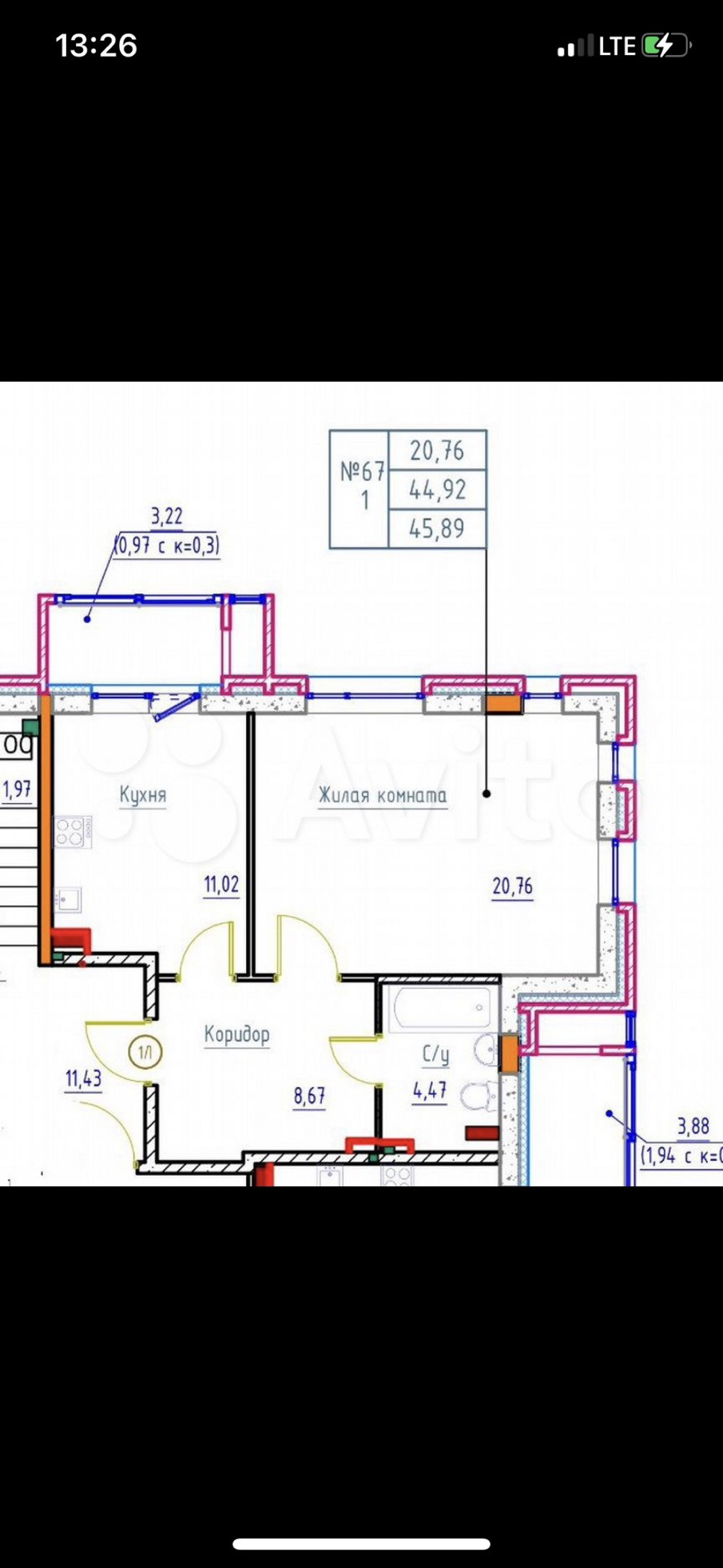 Общая площадь 45 м2