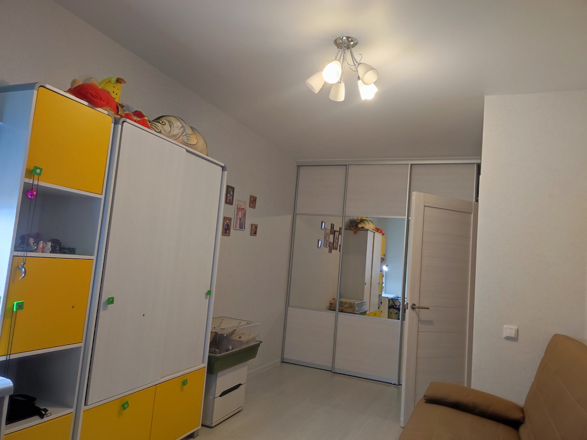 В комнате установлен вместительный шкаф-купе.