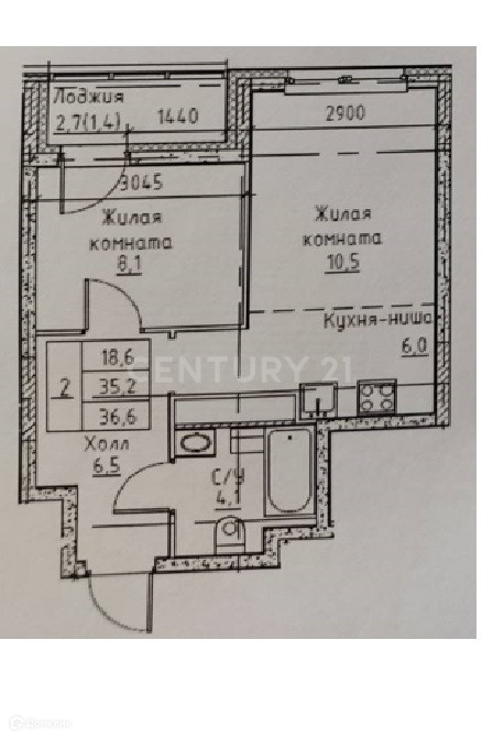 Общая площадь 36.6 м2