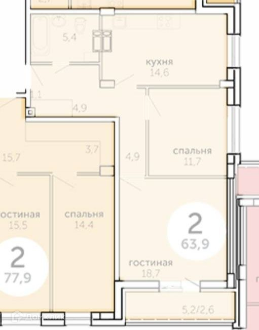 Количество комнат 2