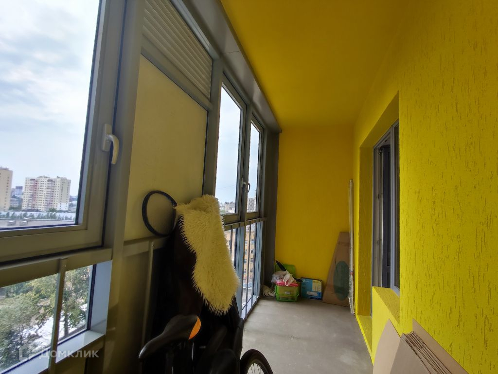 Большая лоджия, окна выходят частично в сторону Комсомольского проспекта, частично на ул. Куйбышева.