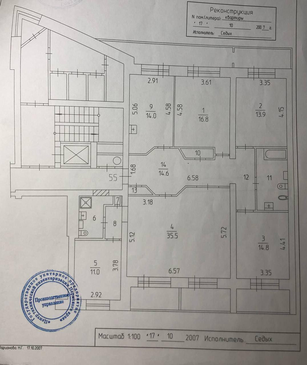 5-комнатная просторная полногабаритная квартира с двумя санузлами в самом центре города - 143,1 кв.м., 7й этаж из 10.