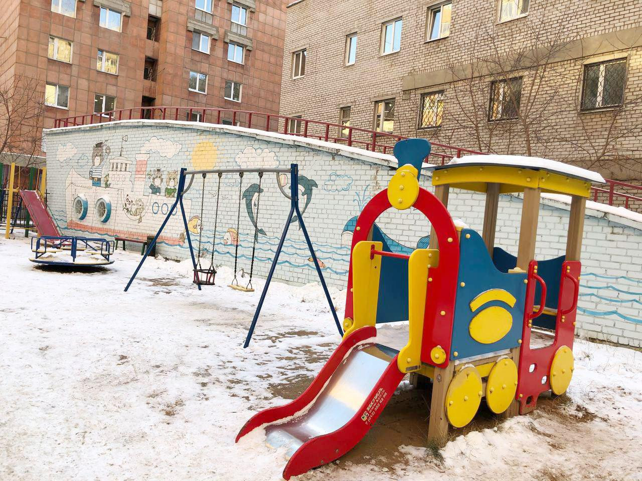 Двор тихий. Въезд во двор закрывается на шлагбаум.