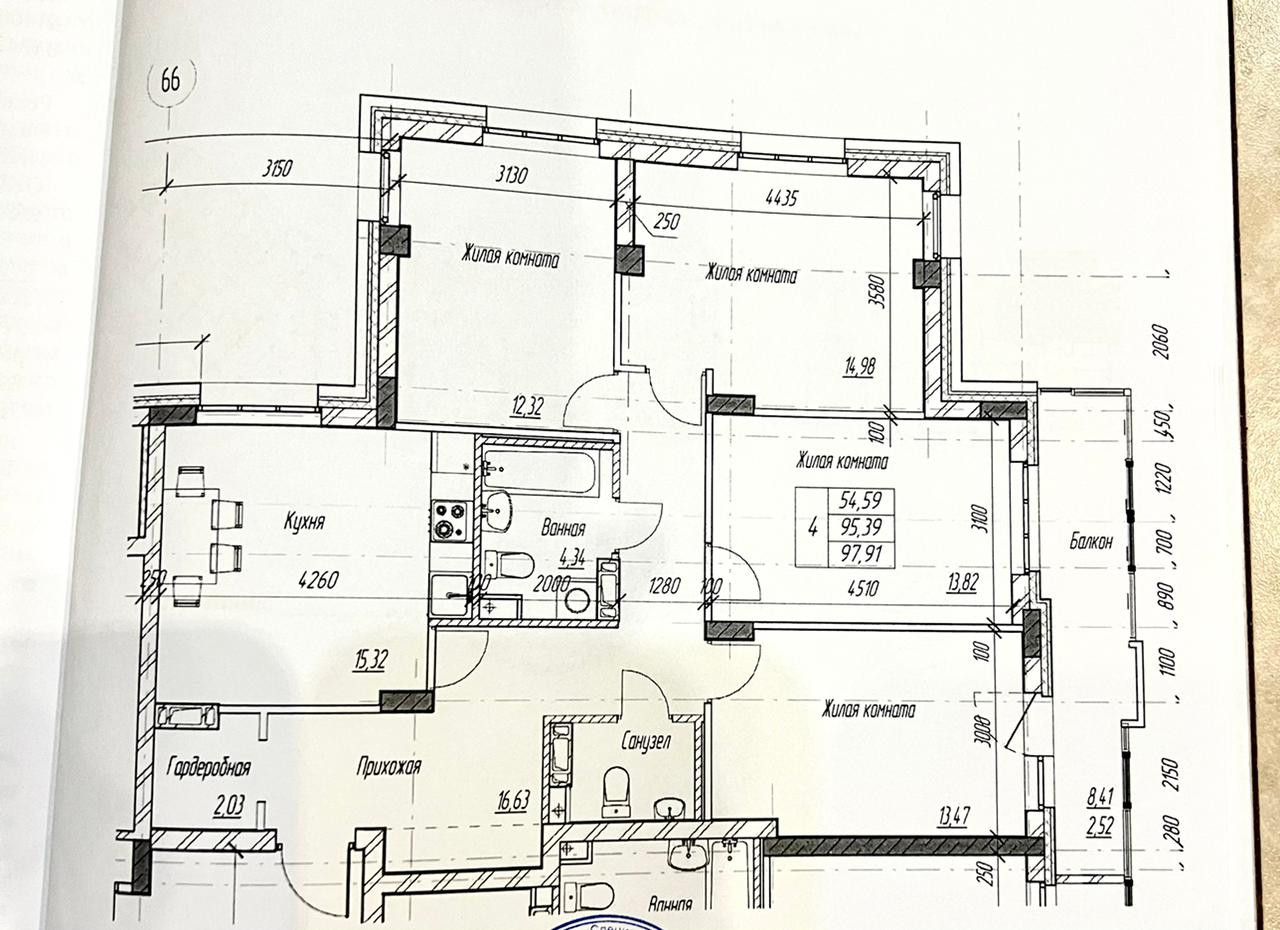 Общая площадь квартиры: 95,39 кв.м., балкон - 8,41 кв.м.