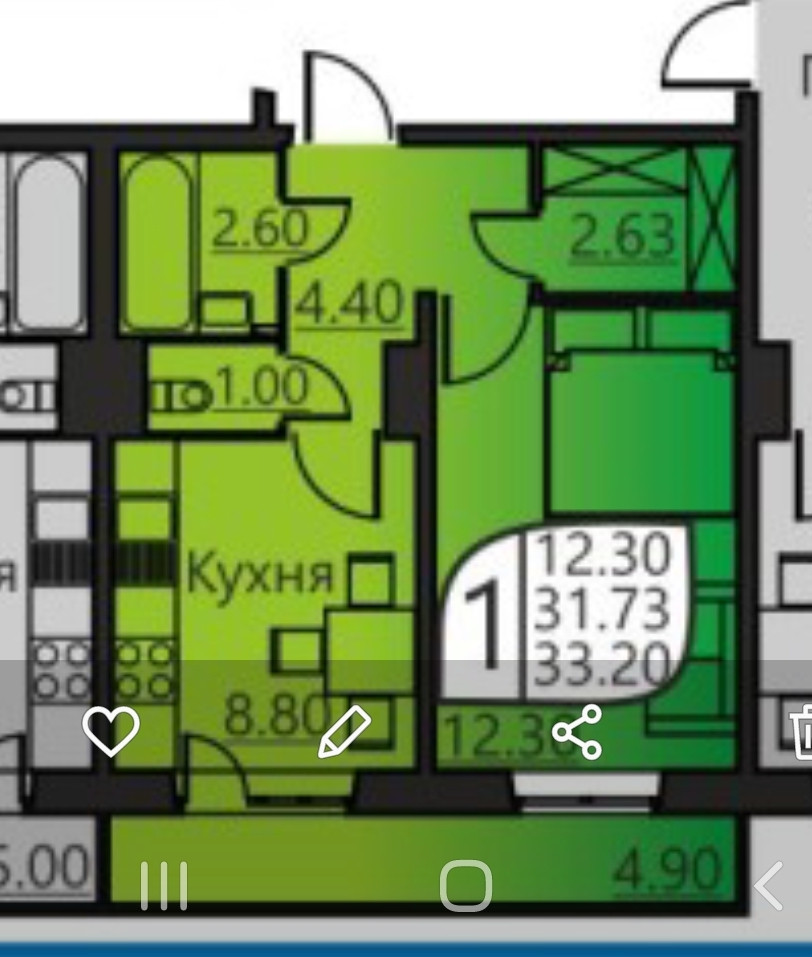 ДОМ СДАН! 33,2 м2 с учетом лоджии.