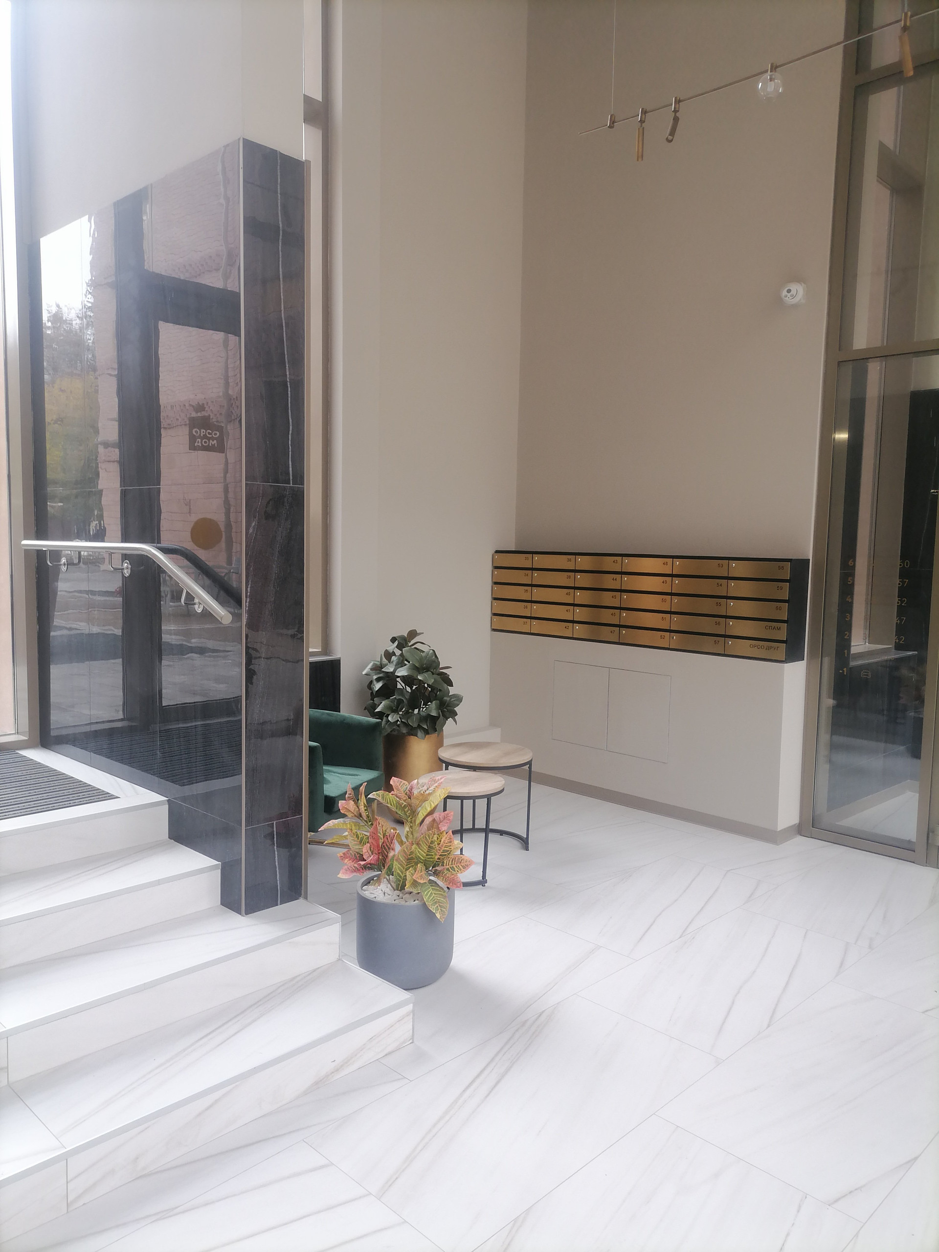 В доме планируется несколько офисных помещений, а также ресторан и бутик на первой линии со стороны улицы Екатерининской.На входе предусмотрены грязезащитные коврики, крыльцо с подогревом. Вход с улицы и со двора. На первом этаже помещение для колясок и велосипедов.