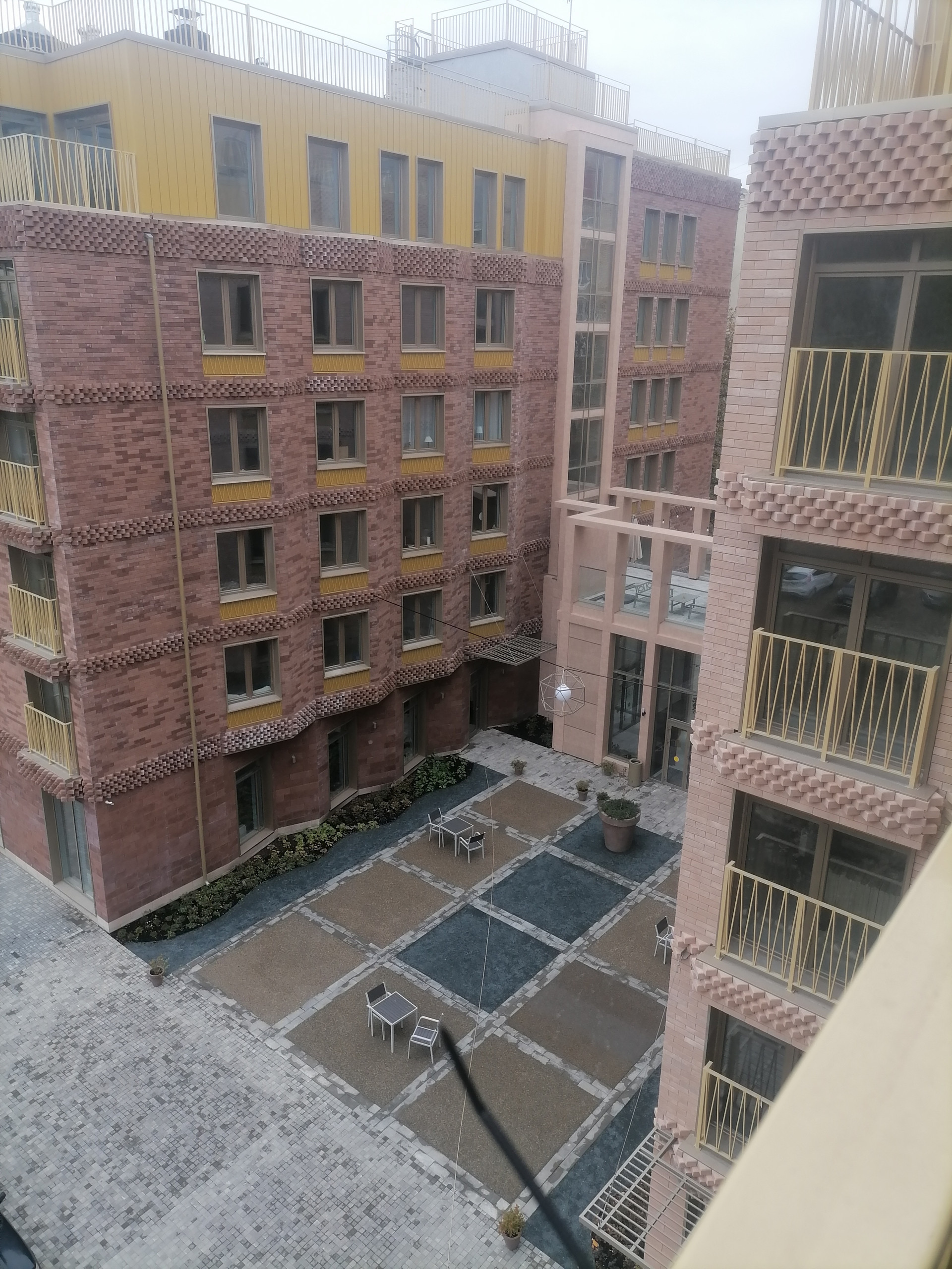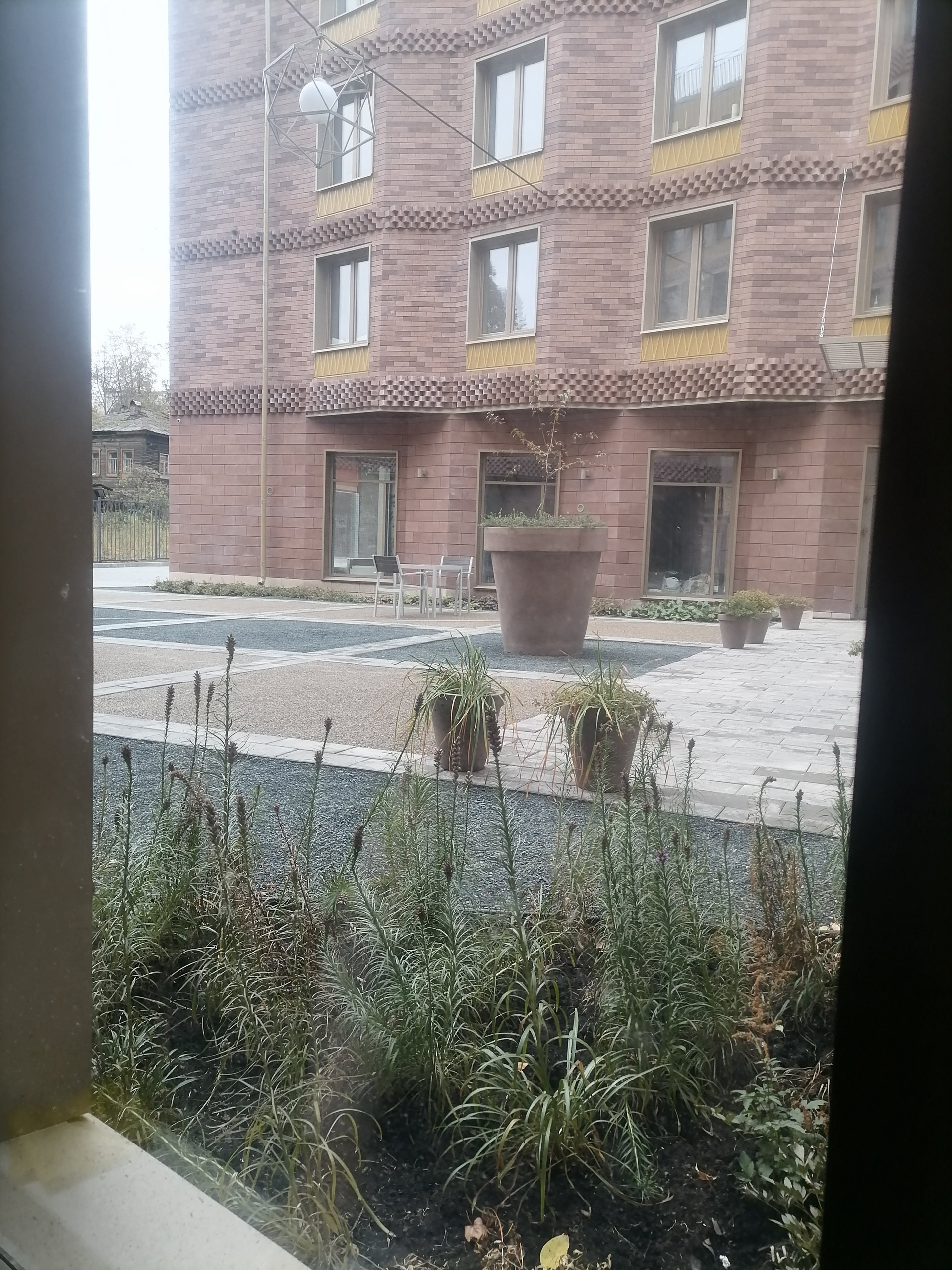 В архитектуре дома уютный тихий двор, скрытый от любопытных взглядов. На внутренней огороженной территории разместилась небольшая игровая площадка для детей.