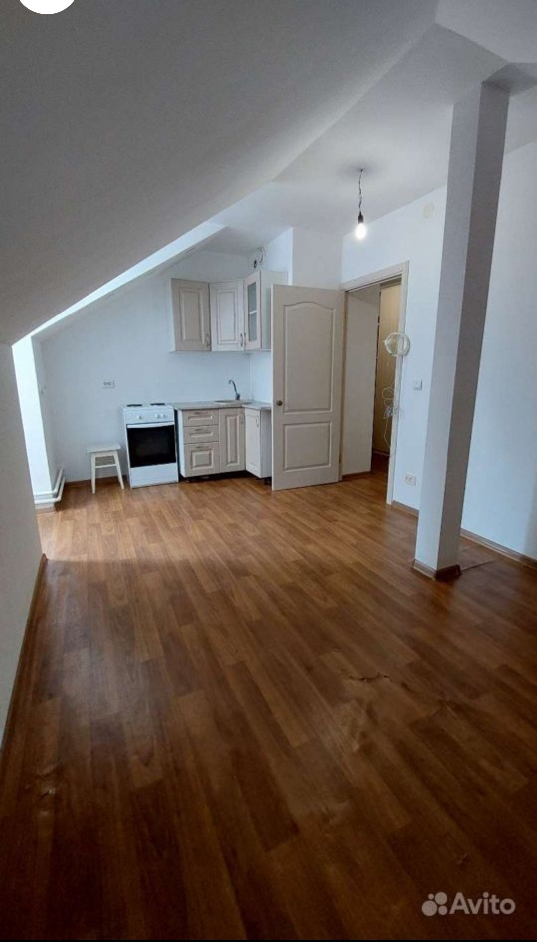 Квартира -студия на мансардном этаже 2 этажного дома, со своим санузлом и ванной, коридором.