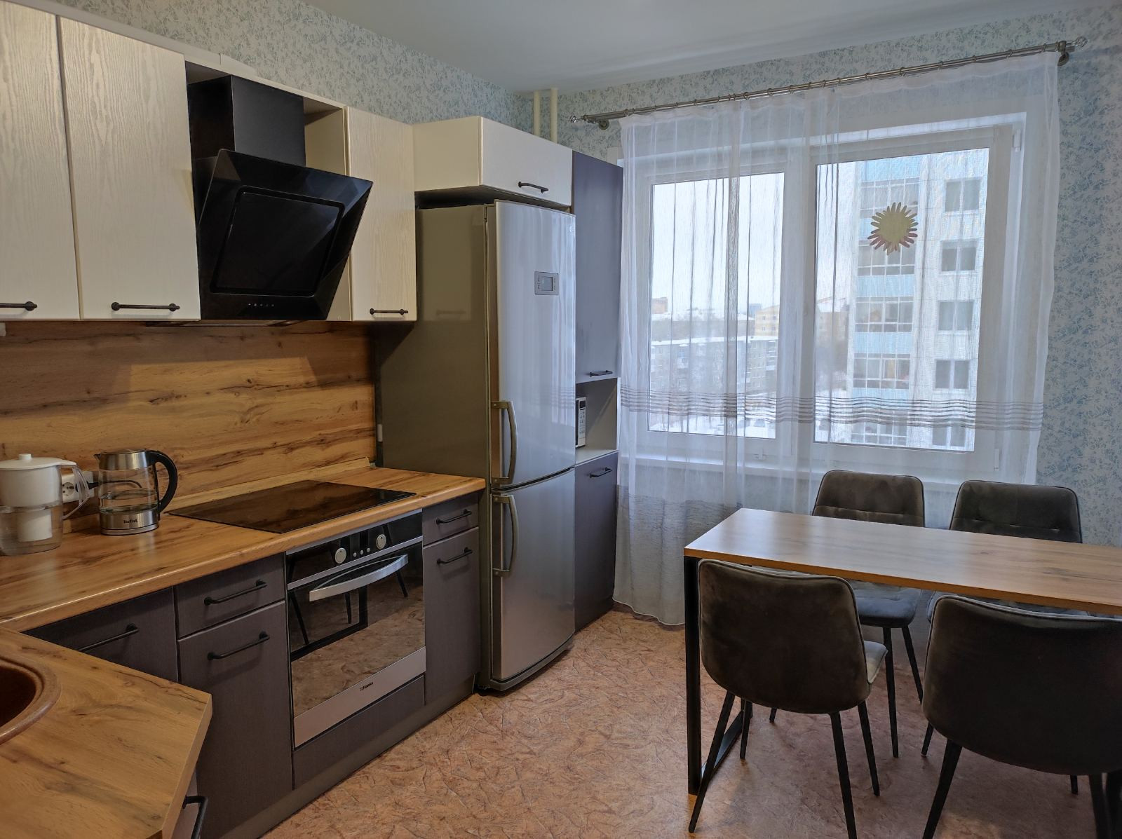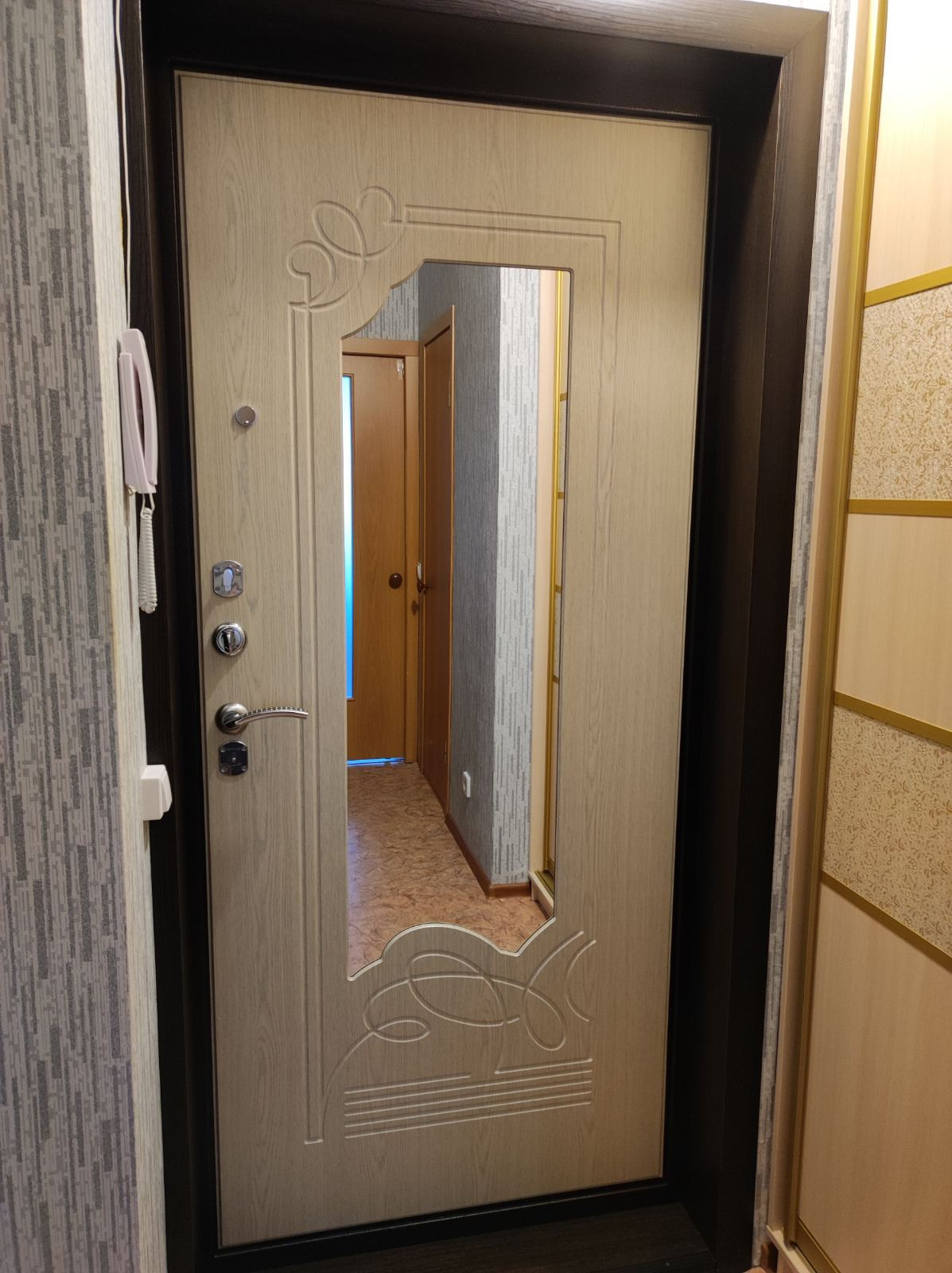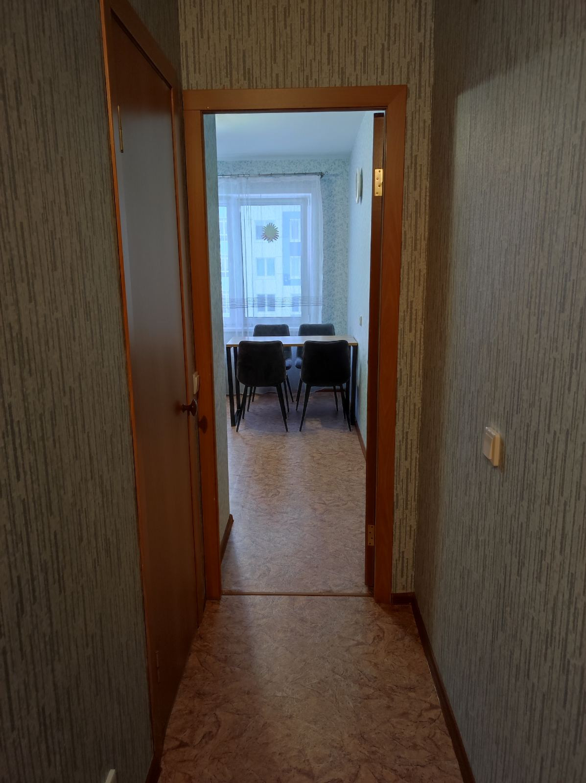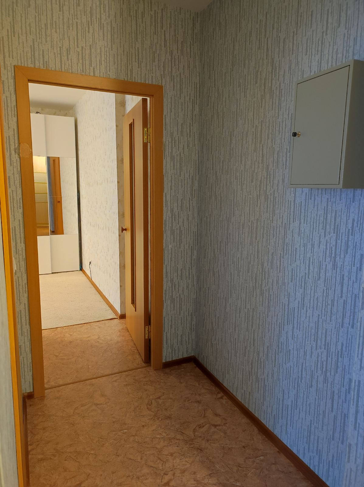 Квартира светлая и просторная, с чистовой отделкой (обои, линолеум, побелка потолка), сантехника, установлены счетчики на воду, отопление и электроэнергию. Панорамное остекление лоджии. В стоимость входит встроенная кухня, водонагреватель, шкаф-купе в прихожей, остальная техника и мебель по договоренности. Спокойные и адекватные соседи.