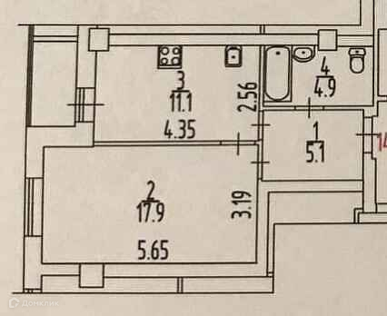 Жилая площадь 17.9 м2