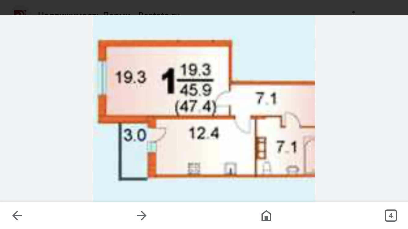 1-комнатная квартира, 47.4 м2, этаж 23 / 25, на продажу в Перми, Уинская улица, 37