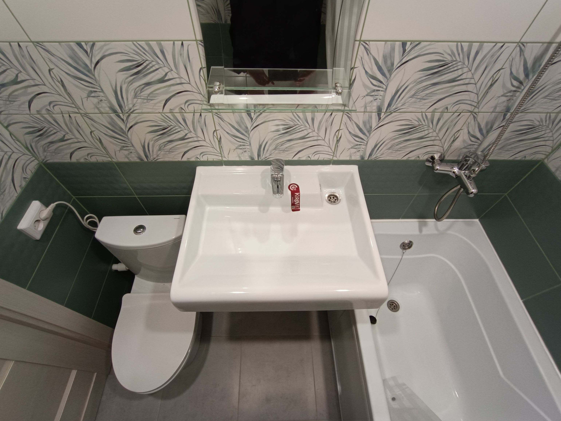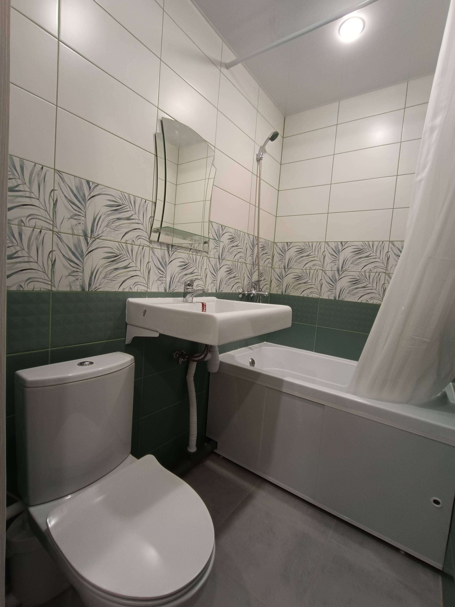 Санузел отделан кафелем, под раковиной оборудовано место под стиральную машину.
