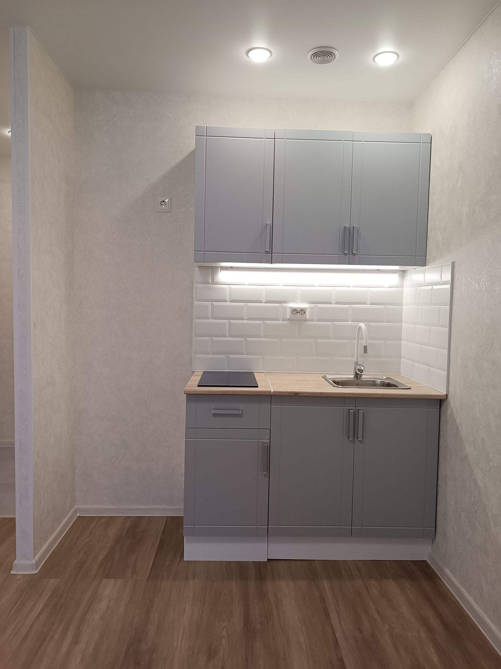 Заменена проводка, стеклопакеты, натяжной потолок, ламинат, установлена надёжная, металлическая входная дверь! Выделена кухонная зона, куда установлен новый, встроенный кухонный гарнитур с варочной поверхностью и подсветкой.