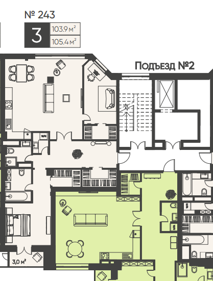Общая площадь 105.4 м2