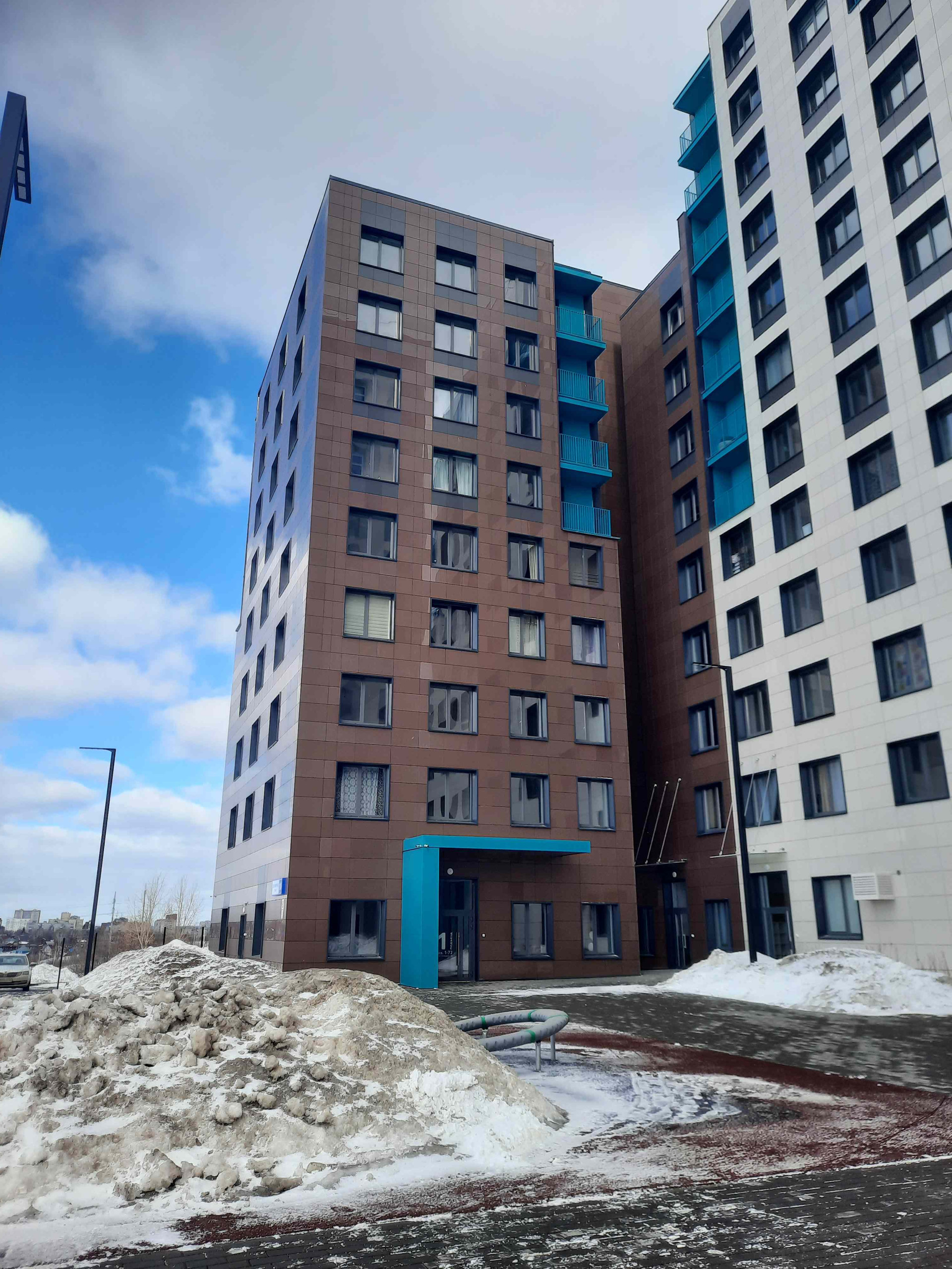 Дом расположен так, что перед ним уже ничего не построят, детская площадка огорожена, двор без машин, лучший вариант для проживания молодым семьям.
