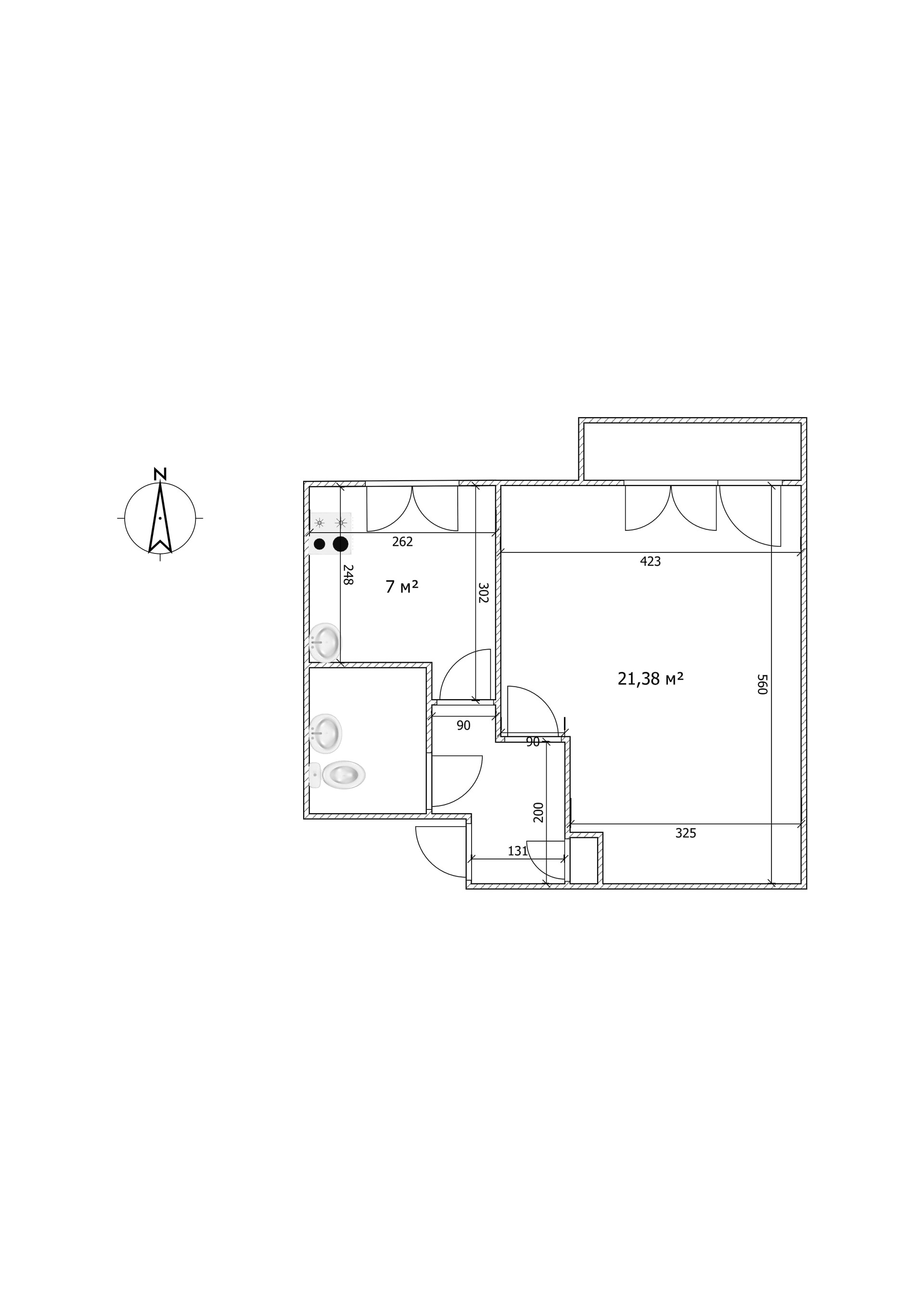 Жилая площадь 21.5 м2