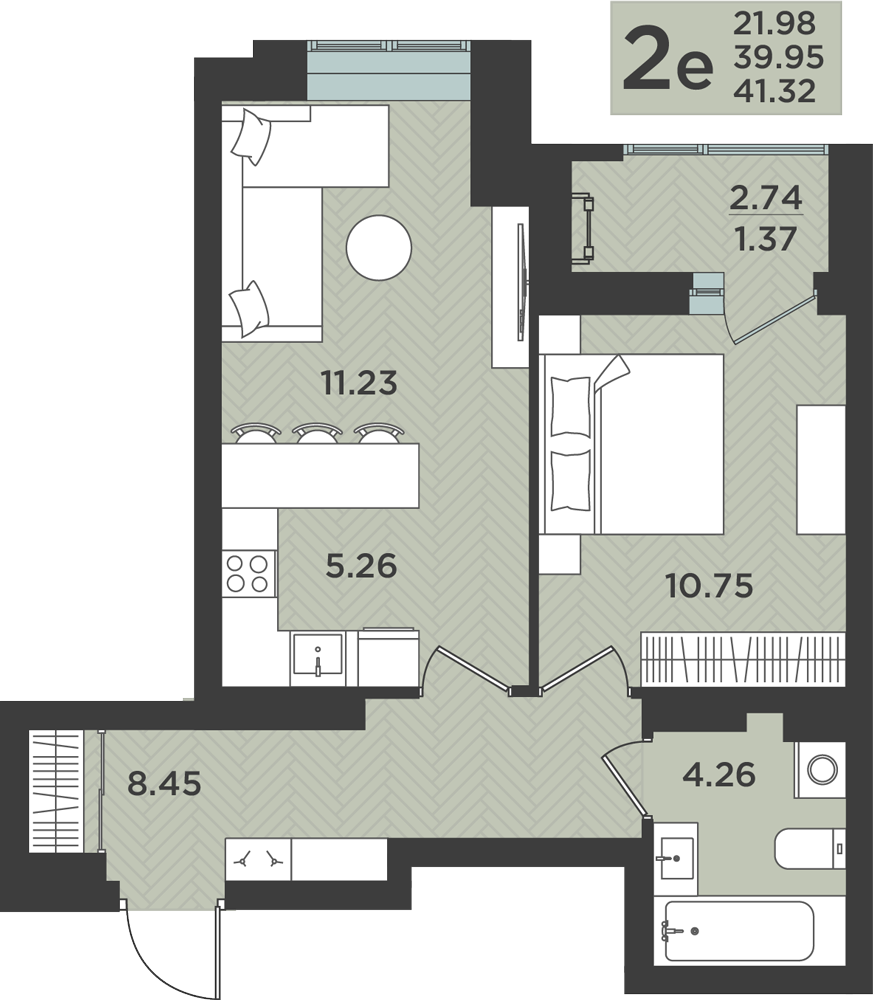 Общая площадь 41.32 м2