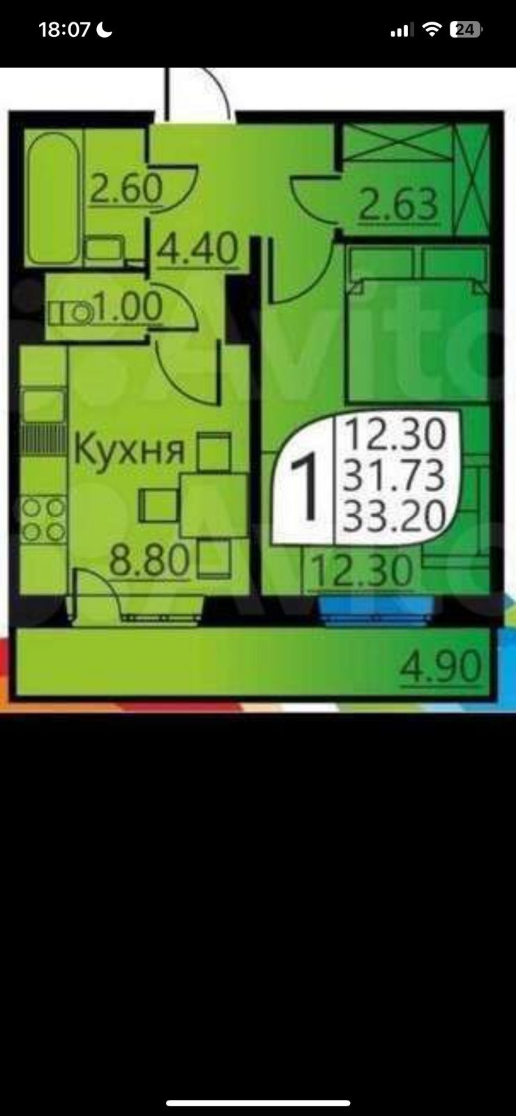 Общая площадь 31.2 м2