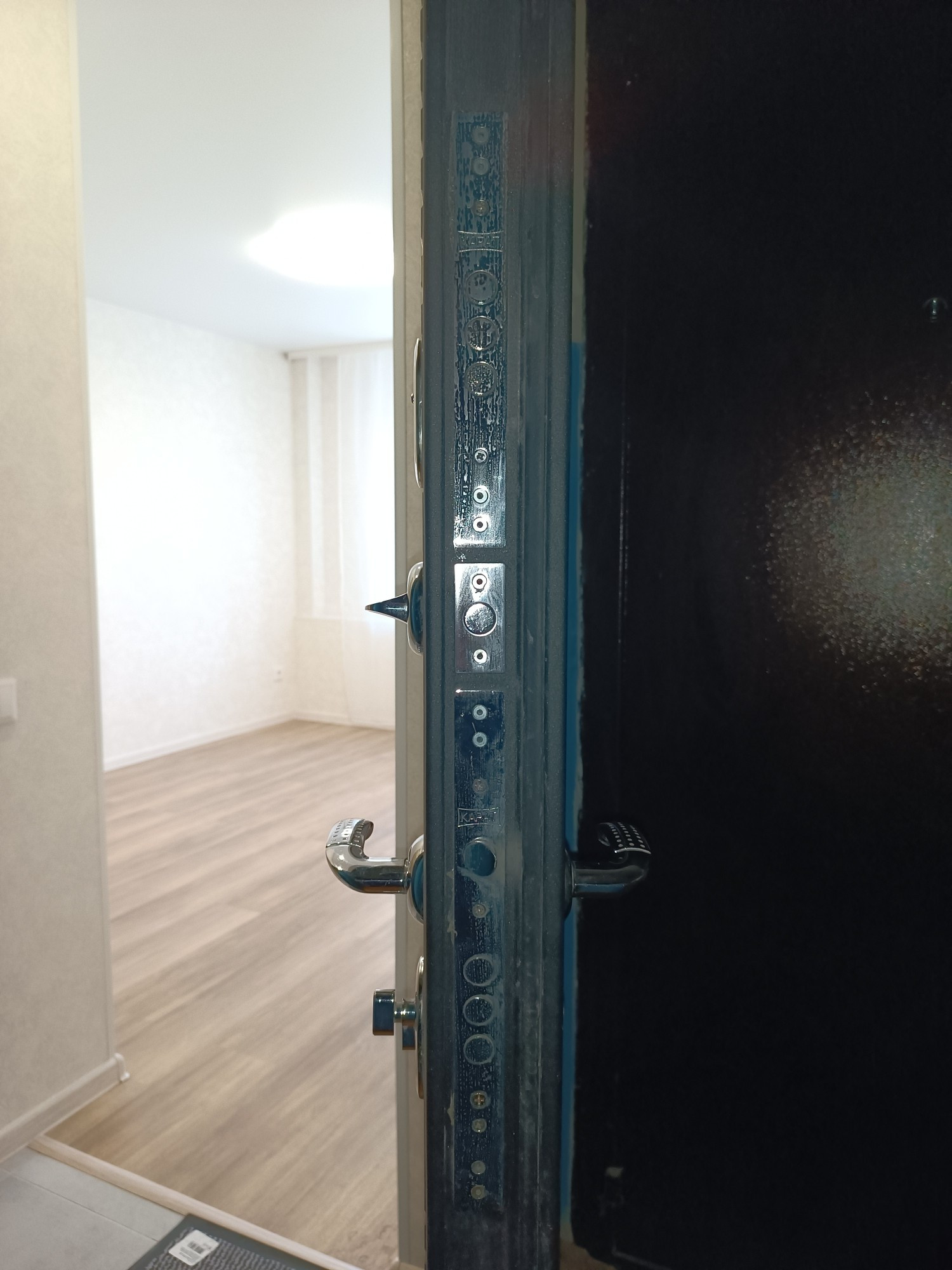 В прихожей выделена ниша под шкаф-купе, либо просто под верхнюю одежду.