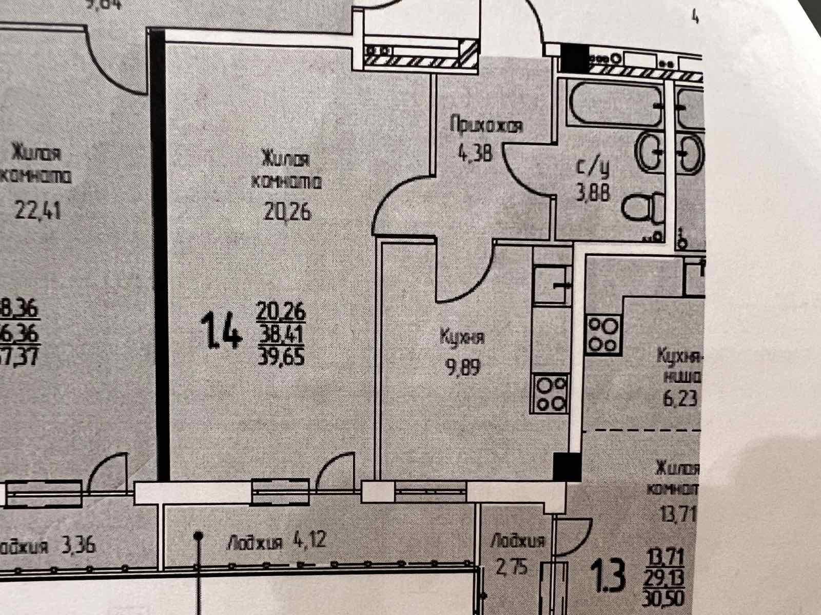 Общая площадь 39.65 м2