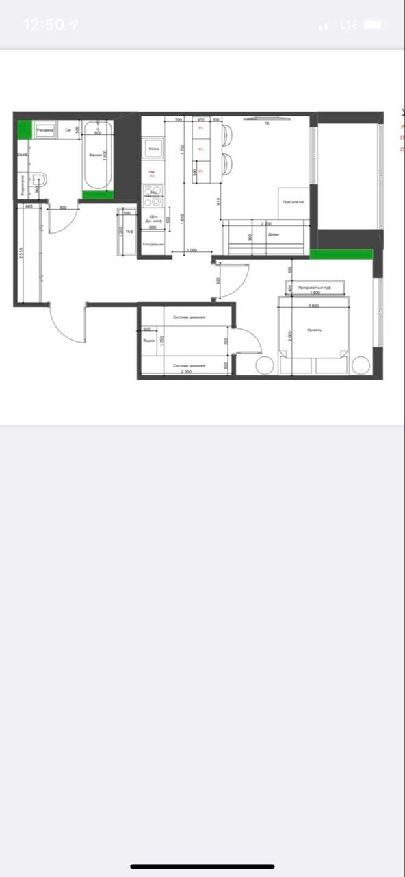 Жилая площадь 22 м2