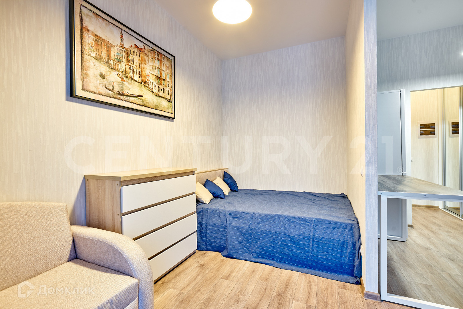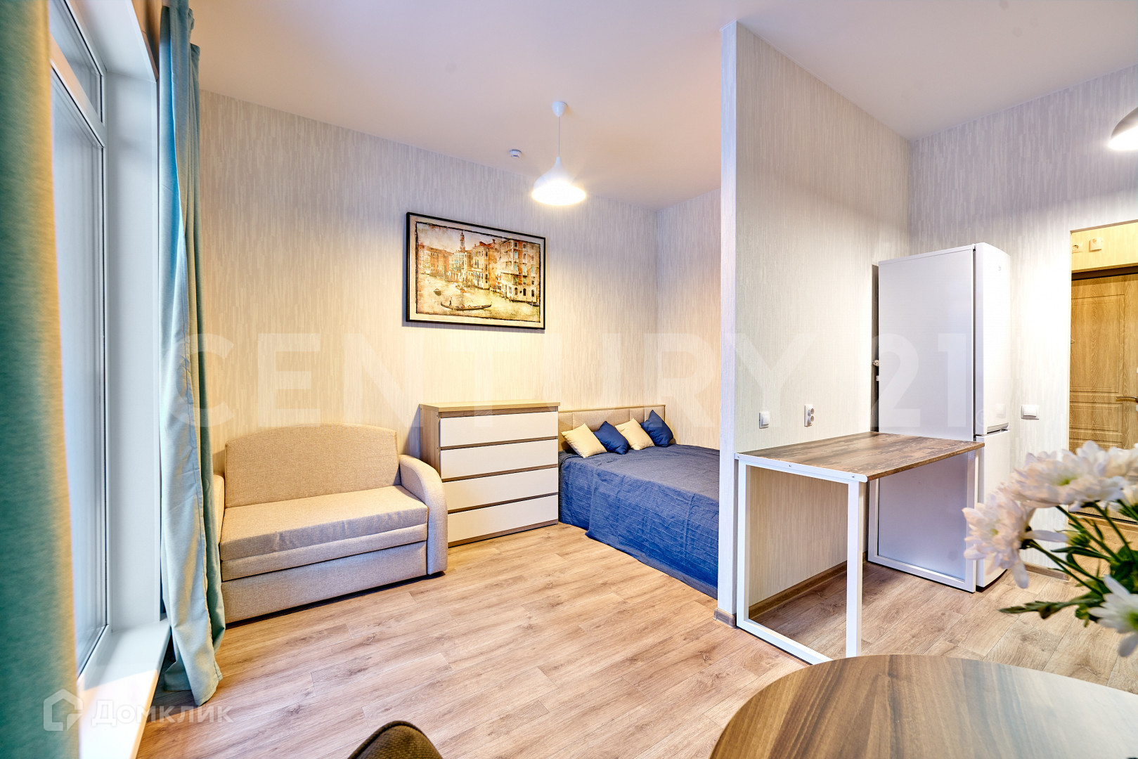 Квартира-студия общей площадью 27 м², высокие потолки - 3 метра.